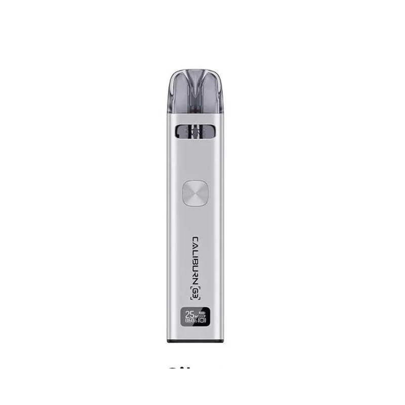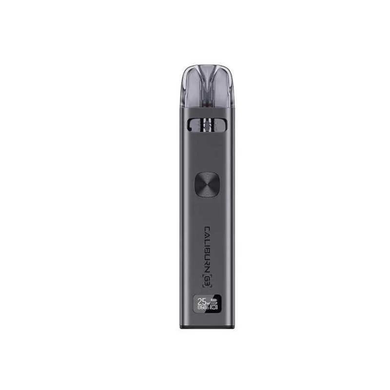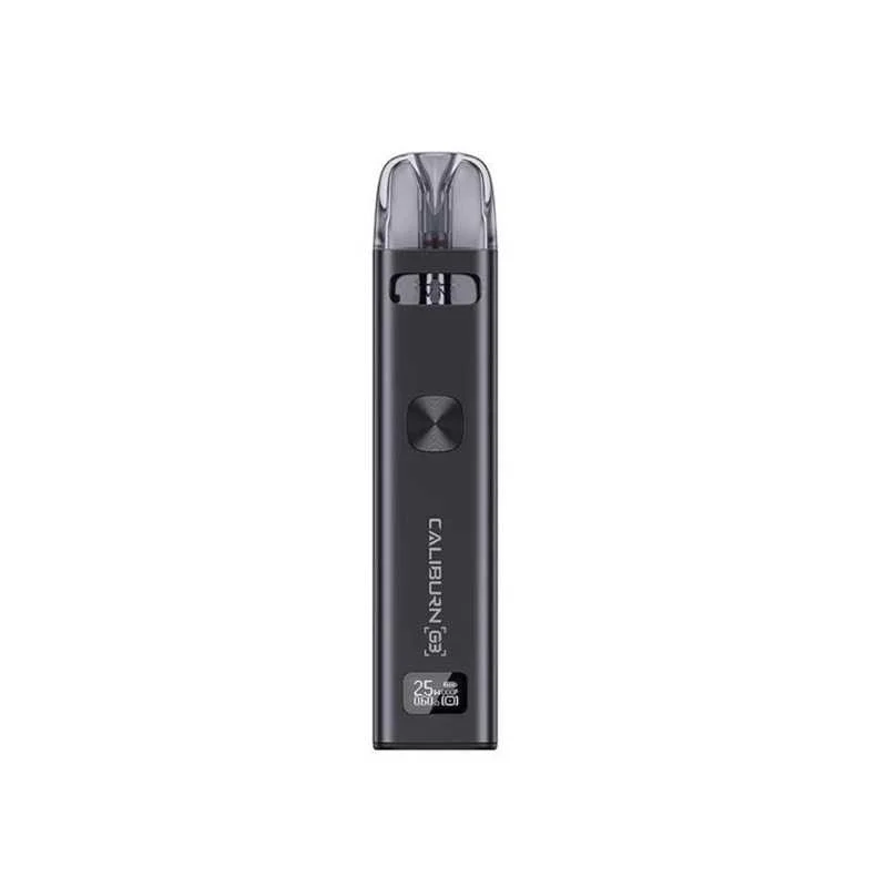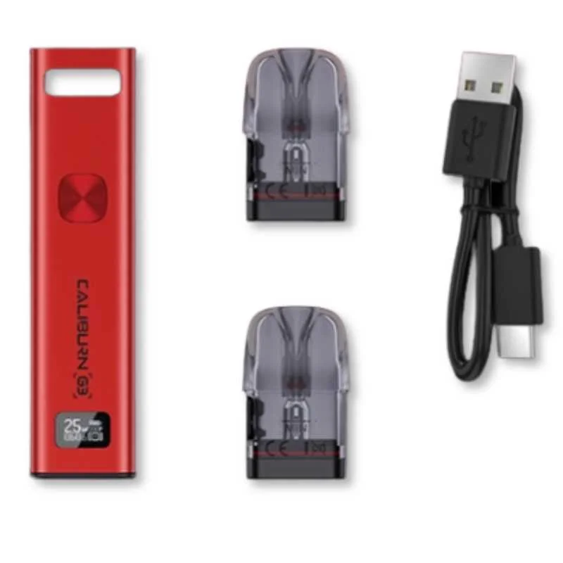 Uwell Caliburn G3 Pod System er en elektronisk cigaret enhed med indbygget 900 mAh batteri. Enheden anvender pods med integreret coil og topfyldning. Der medfølger to pod-varianter på hhv. 0,6 ohm og 0,9 ohm. Enheden har USB-C opladning og et display, der viser wattstyrke og batteriniveau. Enheden kan anvendes med trækaktivering eller knaptryk. Udstyret er kompatibelt med Caliburn G3 pods.
